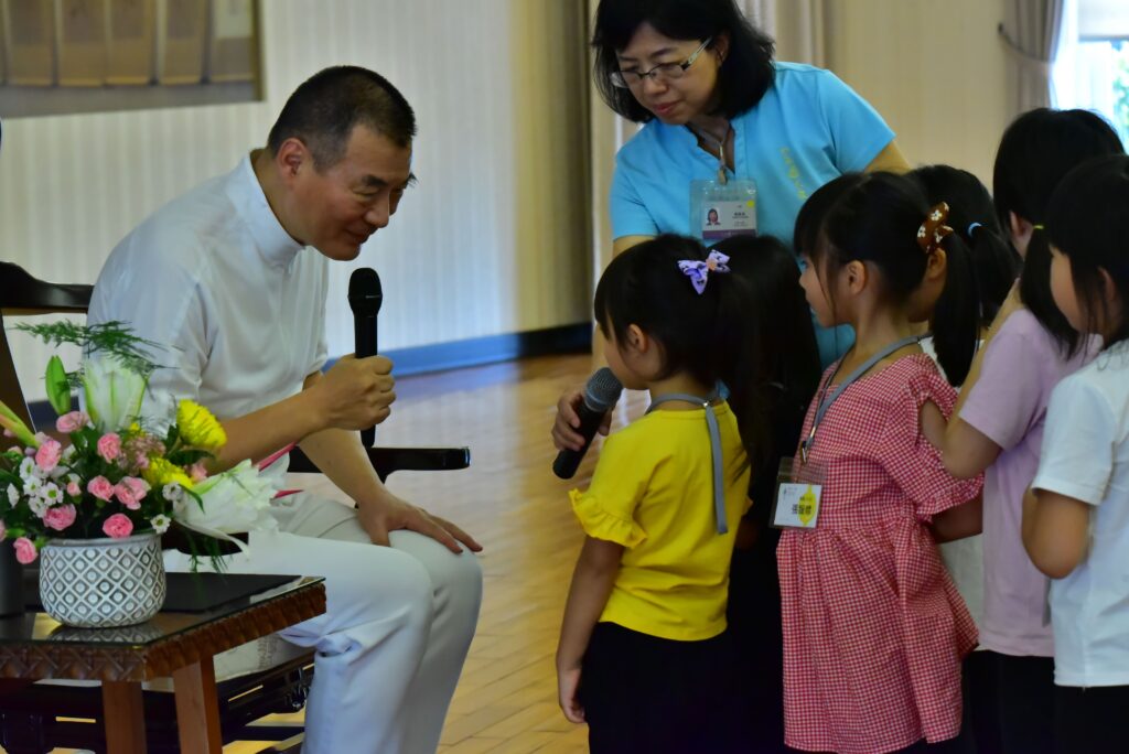 在大愛光老師親帶為每位孩子親傳「本靈光孝親報恩大愛手」時,有人覺得熱熱的、溫暖的、舒服的、涼涼的、重重的……,在與孩子核對是否接到,能讓孩子安心說出感覺。