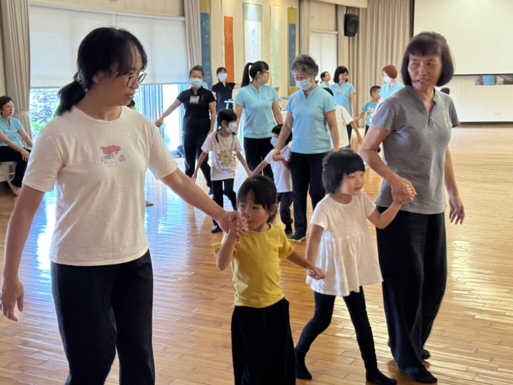最後親子共煉的後退走大圈,大手牽小手一起走,舊生走得淋漓暢快,新生放膽嚐試,親子同步和諧,景象充滿歡樂,在滿滿的光和愛中,課程就到尾聲。